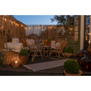 Met dit Konstsmide decoratielichtsnoer voeg je een prachtige warme gloed toe aan je tuin of terras. Het amberkleurige licht brengt een gezellige en uitnodigende sfeer die ideaal is voor avonden buiten. Je kunt dit lichtsnoer zowel binnen als buiten gebruiken, wat zorgt voor maximale flexibiliteit. Het lichtsnoer heeft een totale lengte van 14,75 meter, met een kabel van 10 meter en een lichtset van 4,75 meter. Dankzij de 20 LED lampjes verlicht je eenvoudig een groot gebied. De installatie is simpel en de lichtsnoer wordt geleverd met een netstekker en een gebruiksaanwijzing. De aan/uit schakelaar bevindt zich direct op het product, wat het gebruik eenvoudig maakt. Het lichtsnoer is gemaakt van kwalitatief kunststof en is daarmee weerbestendig. De 20 LED lampjes zijn energiezuinig en gaan lang mee, waardoor je langer kunt genieten van de sfeervolle verlichting. Dit product is ideaal voor feestjes, diners buiten of gewoon om je tuin te verlichten.