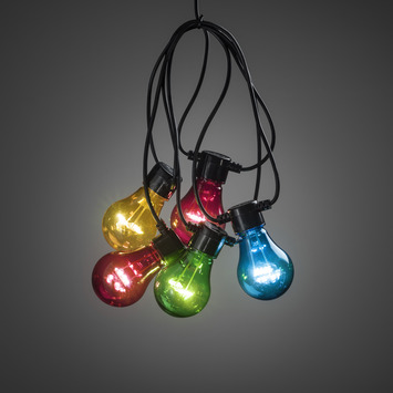 Breng je huis en tuin in een eenvoudig en snel in feestelijke stemming met dit 2 meter lange en zeer energiezuinige premium LED feestverlichting lichtsnoer met 6u timer van het Zweedse kwaliteitsmerk Konstsmide. Het snoer werkt op batterijen en kan dus overal flexibel en zonder stroomaansluiting binnen of buiten worden toegepast. Dit lichtsnoer met een hoge lichtopbrengst gedurende de hele levensduur is een 2 meter lang zwart lichtsnoer met 5 multicolor verlichte transparante kunststof bollen, elk voorzien van 8 LEDs midden in de bol geplaatst voor maximale lichtspreiding. De afstand tussen de lichtbronnen is 50 cm. De bollen zijn van kunststof en dus niet breekbaar. Het snoer heeft een batterijbox die zonder gereedschap geopend en gesloten kan worden en die corrosievrij is. Op de batterijbox is een schakelaar met 3 standen ingebouwd: 1=TIMER 6H / 2= on / 3 = OFF. Op stand 1 activeer je een 6-uurs timer: het snoer schakelt 6u in en vervolgens automatisch 18u uit. Dit is handig als het snoer buiten hangt. Op stand 2 schakel je het snoer permanent in, op stand 3 permanent uit. Het lichtsnoer werkt op 4x AA/LR6 batterijen (niet meegeleverd). De batterij box is spatwater en stofdicht (IP44) en geschikt voor binnen- en buitengebruik. Niet geschikt voor gebruik in of onder water. Het aansluitsnoer van batterijbox tot aan de eerste lichtbron is 3 meter lang. Dit feestverlichtingsnoer op batterij geeft een extra gezellig en feestelijk tintje aan speciale gelegenheden zowel binnen als buiten. Denk aan een barbeque, tuinfeest, buurtfeest, klassenfeest, examenfeest, reunie, verjaardag, jubileum, housewarming, kraamfeest of welke andere feestelijke aanleiding dan ook. Kan worden opgehangen in tuin, terras, serre, partytent of gewikkeld worden om een balkonhek, vlaggenmast, pergola, parasol of erfafscheiding. Op de camping kun je het lichtsnoer perfect gebruiken voor het verlichten van voortent of luifel van de caravan. Er is geen netstroom nodig dus overal te gebruiken waar je maar wilt. De LED lichtbronnen gaan ten minste 20.000 uur mee, dat wil zeggen minimaal 10 jaar bij dagelijks gebruik van 6 uur. Onderhoud of vervangen van LED is dus niet nodig. Tevens is het snoer zeer energiezuinig met een verbruik van slechts 1,5 W. De ruime kabeldiameter garandeert een hoge trekbelasting. Het lichtsnoer heeft een Europees veiligheidskeurmerk EN50698 en is uitstekend beschermd en geisoleerd tegen vocht van buitenaf. Het snoer is zodanig geconstrueerd dat het zelfs onder de meest extreme (Scandinavische) weersomstandigheden en temperaturen probleemloos blijft werken. Konstsmide doet geen concessies aan kwaliteit van materiaal en afwerking. Een optimale gebruikservaring bereiken voor de gebruiker maar met aandacht voor milieu en maatschappij innovatie (Sustainable Development Goals) is onze drijfveer als ervaren specialist in premium feestverlichting.