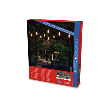 Maak het hele jaar door een geslaagd feestje van alle (buiten) activiteiten met dit stijlvolle en sfeervolle feestverlichtingsnoer met 4 traps dimmer van het Zweedse premium merk Konstsmide. Dit 10 lamps Edison en 4.5 m lange PowerLED lichtsnoer heeft een prachtige en krachtige extra warmwitte 1800K sfeervolle lichtkleur. Het veilige 24V snoer heeft een aansluitkabel van 10 meter lengte. De krachtige maar sfeervolle PowerLED lichtbronnen zijn energiezuinig maar toch krachtig. Mocht er een lichtbron uitvallen dan vervang je deze zeer eenvoudig. Het snoer is bestand tegen extreme Scandinavische weersomstandigheden en doorstaat moeiteloos hoge en lage termperaturen. De Edison LED lampen zijn zeer goed geïsoleerd tegen binnendringend water. De lengte van het aansluitsnoer bedraagt maar liefst 10 meter en elke bol is bovendien voorzien van een ophanghaakje. Het snoer werkt op een IP44 goedgekeurde 24V buitentrafo en is voorzien van een Europees veiligheidskeurmerk en daarmee volkomen veilig in gebruik. De LED lichtbronnen gaan ten minste 20.000 uur mee, dat wil zeggen minimaal 20 jaar bij dagelijks gebruik van 3 uur. De push in LED lichtbronnen zijn zeer kleurhomogeen hebben minimaal verlies aan output gedurende de levensduur. Op de trafo van dit lichtsnoer is een ingebouwde dimmer verwerkt waarmee de output van het snoer op 100% - 75% -50% -25% kan worden ingeschakeld. De dimmer heeft een memoryfunctie dus na onderbreking van de stroomtoevoer hervat de dimmer met de laatst ingestelde dimmerstand. De dimmer is tevens de aan/uit schakelaar. Het lichtsnoer is kwalitatief hoogwaardig. Konstsmide lichtsnoeren worden vervaardigd in een BSCI/SA8000 (Business Social Compliance Initiative) gecertificeerde productielocatie. Het snoer kan zowel binnen en buiten worden gebruikt en zorgt voor een gezellig, feestelijk tintje bij speciale gelegenheden als een barbeque, tuinfeest, WK/EK, examenfeest, verjaardag, jubileum, housewarming, huwelijksfeest, babyshower, kraamfeest en kan worden opgehangen in de tuin, terras, serre, partytent of aan balkon, pergola, parasol, voortent, luifel, erfafscheiding. In de winterperiode is dit snoer bij uitstek geschikt voor verlichting van bomen en struiken. Het aansluitsnoer is met 10 meter zeer ruim. De afstand tussen de lampen is 50cm. Met dit lichtsnoer van Konstsmide kies je voor premium kwaliteit en optimale sfeer!