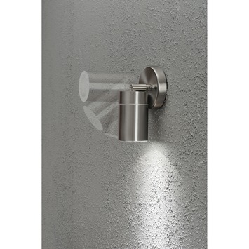 De Konstsmide Modena wandlamp kantelbaar RVS is een moderne wandlamp die naar beneden schijnt. Je creëert sfeer en gezelligheid in je tuin doordat de buitenlamp een prachtig effect op de muur laat zien. Het armatuur is geschikt voor een GU10 fitting van maximaal 35 watt maar ook voor ledverlichting.