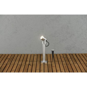 De Konstsmide buitenlamp Monza staand Powerled 51 cm is gemaakt van aluminium en wordt geleverd inclusief tuinspies en aansluitsnoer. Deze moderne buitenlamp geeft een sfeervolle verlichting op je tuinpad of oprit. Maar ook als verlichting bij een vijver of zwembad staat dit tuinpaaltje schitterend. De sokkel is eenvoudig vast te zetten en de lamphouder is kantelbaar waardoor je gericht kunt verlichten. De lamp is bestand tegen alle weersinvloeden, hierdoor heeft de lamp een zeer lange levensduur.