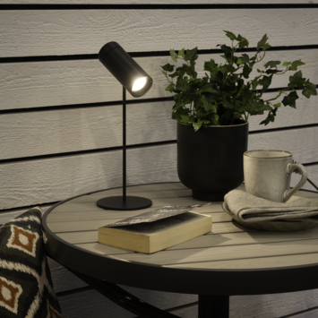 De geïntegreerde LED-lichtbron van 1,8W is dimbaar en biedt twee lichtkleuren: 2200K voor een warme gloed of 3000K voor een helderder effect. Opladen gebeurt eenvoudig via USB, waarna je de lamp overal mee naartoe kunt nemen. De lamp heeft een hoogte van 30 cm, breedte van 11 cm en een spotkoplengte van 11,5 cm. Met een IP54-classificatie is hij beschermd tegen stof en spatwater, geschikt voor binnen en buiten. Twee jaar garantie geeft extra zekerheid.