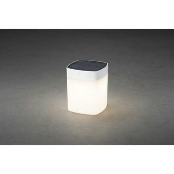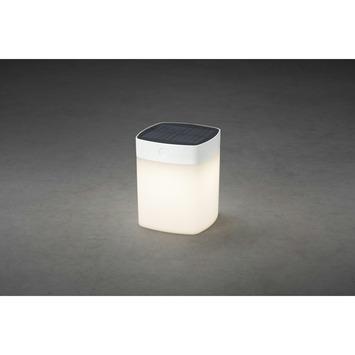 De Konstsmide tafellamp Assisi wit dimbaar is een handige en energiezuinige buitenlamp die gebruikt kan worden als hanglamp of als tafelmodel. Doordat deze lamp oplaadbaar is door zonne-energie (geen aansluitsnoer nodig) is deze eenvoudig te gebruiken in bijvoorbeeld de tuin of op de camping. Deze grijze solarlamp is gemaakt van kunststof in combinatie met opaal acrylglas. De lamp is voorzien van een geïntegreerde LED-lichtbron die je eenvoudig kunt dimmen in 3 standen (100/40/10 lumen). De lamp gaat bij een volle accu maximaal 4, 10 of 40 uur mee, afhankelijk van de dimstand.