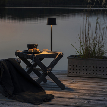 Deze USB oplaadbare, draadloze terras/serre/lounge vierkante LED tafellamp Capri 7814 op batterij is een matzwarte aluminium tafellamp van het Zweedse premium merk Konstsmide®. Deze veelzijdige tafellamp met een afmeting van 10x36cm die op batterij werkt, is eenvoudig op te laden. De lamp kun je plaatsen op een laadstation en kan na het opladen binnen of buiten worden gebruikt. Deze moderne en energiezuinige lamp heeft 10 LED lichtbronnen en kun je volledig bedienen met de touch button die 3 functies heeft. Je kunt de tafellamp hiermee aan en uit zetten (ON/OFF), de lichtkleur kiezen (2700K extra warmwit of 3000K warmwit) en heen en terug dimmen. De kleur van de touchbutton (rood of groen) geeft groen licht wanneer de lamp in werking en/of volledig is opgeladen en rood als de batterij leeg raakt en/of wordt opgeladen. De laadtijd bedraagt maximaal 6u. Het armatuur is na volledige lading vervolgens binnen of buiten draadloos gedurende 9u worden gebruikt op maximaal vermogen. De lamp kan overal binnen of buiten worden neergezet. De sfeer kun je mede bepalen door de lamp traploos terug te dimmen. De lengte van het meegeleverde USB snoer is 1.5m. Gebruik een 5V adapter met een vermogen van maximaal 1A. De lichtbronnen en de LED driver zijn beiden van uitstekende kwaliteit. De lichtbronnen gaan de hele levensduur van het armatuur mee. De LED lichtbronnen zeer energiezuinig met een totaalverbruik van slechts 2.2W.