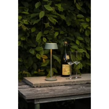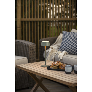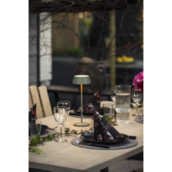 De KonstSmide tafellamp Menton 2,9W in groen is een compacte en stijlvolle LED-lamp die je overal mee naartoe kunt nemen. Opladen gebeurt eenvoudig via het meegeleverde oplaadstation en binnen ongeveer zes uur is de lamp volledig opgeladen. De geïntegreerde LED van 2,9W is dimbaar en biedt twee lichtkleuren: 2200K voor een warme gloed of 2700K voor een iets helderdere sfeer. Zo pas je het licht altijd aan op jouw gewenste ambiance.