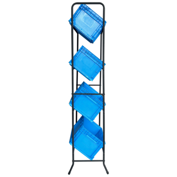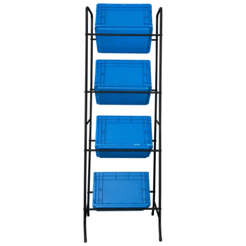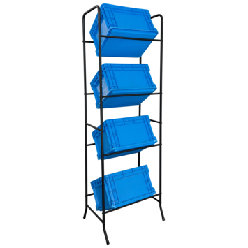 Dit metalen krattenrek in zwart biedt een stevige opbergoplossing met een draagvermogen van 35 kg. Met zijn afmetingen van 160x53x40 cm is het ideaal voor het organiseren van kratten en andere opbergmaterialen. Perfect voor gebruik in garages, bergingen of werkruimtes.