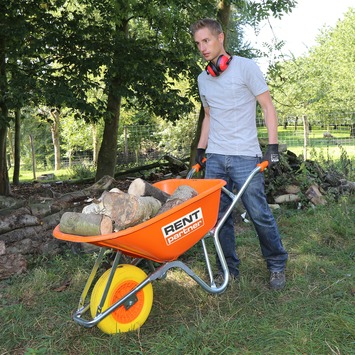Met de kruiwagen kan je eenvoudig zware voorwerpen, zoals klinkers, zand of tuinafval verplaatsen. De kruiwagen heeft dikke, brede band. Karwei werkt samen met RentPartner voor het verhuren van Gereedschap