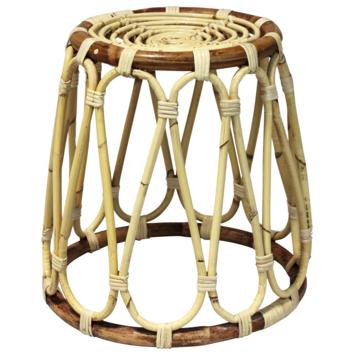 Handige handgemaakte rotan bijzettafel, die ook als kruk gebruikt kan worden.