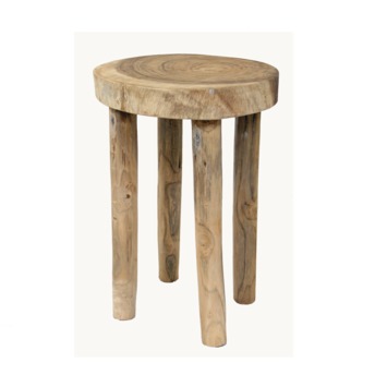 Kruk Yfke is een stevige ronde houten teak kruk op vier poten. De kruk past in vrijwel elk interieur thuis en is te gebruiken als zitmeubel of als bijzettafel.