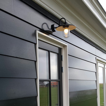 De KS buitenlamp Brig is een trendy en industrieel vormgegeven muurlamp die doet denken aan een stationslamp. De Brig is afgewerkt met een prachtige hoogglans zwarte kleur. De Brig beschikt over een E27 fitting is daardoor geschikt voor de gewone maat lamp. Er kan ook gebruik gemaakt worden van LED verlichting. De KS buitenlamp Brig is spatwaterdicht door zijn IP waarde van 44.