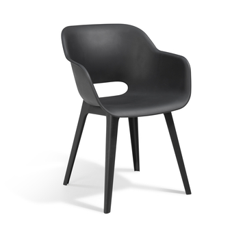 Een kuipstoel die je zowel binnen als buiten rond je tafel kunt zetten? Hebbes! De kuipstoel Akola in de kleur antraciet is een kuipvormige stoel gemaakt uit kunststof waarin je erg comfortabel kunt zitten, aperitieven, eten, (na)praten, ... Extra troeven: de trendy eetkamerstoel / tuinstoel is licht maar stevig en stapelbaar.