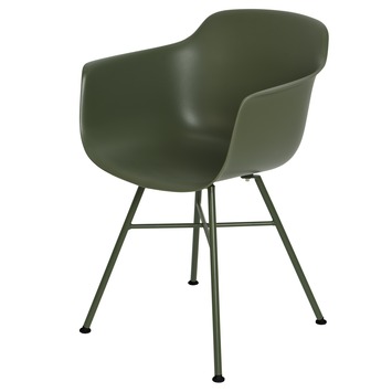 Kuipstoel Mees legergroen is een kunsstof kuipstoel met metalen poten die momenteel zeer trendy is. Een moderne, Scandinavisch stoel die te gebruiken is aan de eettafel, maar ook erg mooi is als losse fauteuil in de woonkamer. De poten staan naar buiten, wat een speelse, unieke look geeft. Kuipstoel Mees legergroen is 80 cm hoog, 59 cm breed en 53 cm diep.