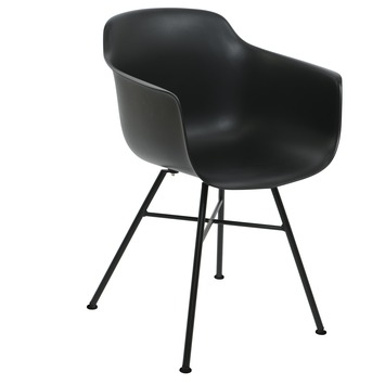 Kuipstoel Mees komt in een zwarte kleur en is helemaal de trend van dit moment. Een moderne, Scandinavisch stoel dat te gebruiken is aan de eettafel, maar ook erg mooi is als losse fauteuil in de woonkamer. De poten staan naar buiten, wat een speelse, unieke look geeft.