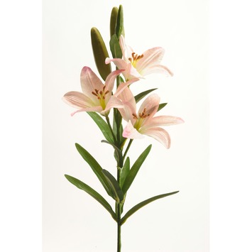 Kunstbloem Lelie is roze, bestaat uit meerderen takken met bloemen en is 70 cm lang. Kunstplanten en -bloemen zijn de ideale manier om een kamer van groen te voorzien, zonder groene vingers te hoeven hebben. Naast deze Lelie zijn er nog andere varianten kunstbloemen en kunstplanten, leuk om te combineren. De kunstbloemen en kunstplanten lijken net echt.