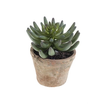 Kunstplant Vetplant 16 cm, zit in een ronde antieke terracotta pot. Kunstplanten en -bloemen zijn de ideale manier om een kamer van groen te voorzien, zonder groene vingers te hoeven hebben. Naast deze Vetplant zijn er nog andere varianten kunstplanten en kunstbloemen, leuk om te combineren. De kunstplanten en kunstbloemen lijken net echt.
