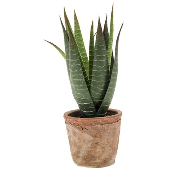 Kunstplant Aloe vera heeft meerdere takjes en is 23 cm hoog, zit in een ronde pot. Kunstplanten en -bloemen zijn de ideale manier om een kamer van groen te voorzien, zonder groene vingers te hoeven hebben. Naast deze Aloe Vera zijn er nog andere varianten kunstplanten en kunstbloemen, leuk om te combineren. De kunstplanten en kunstbloemen lijken net echt.
