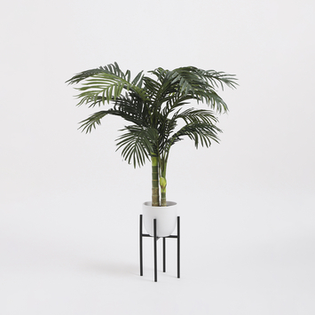 Waar een echte area palm of goudpalm om aandacht schreeuwt, heeft deze plant geen enkel onderhoud nodig. Dat is dan ook het enige verschil, want deze kunstplant is niet van echt te onderscheiden. Van de kenmerkende palmbladeren tot het kleurverloop in de twee stammen: alles is tot in detail nagemaakt. De plant is stevig verankerd in een zwarte kunststof pot, maar moet voor gebruik nog in model worden gebracht. De vuistregel hierbij is dat het blad je moet aankijken. Zet hem na het uitvouwen zo neer, of gebruik de kunststof pot als stevige basis voor een sierlijke overpot. Combineer hem met andere kunstplanten en kunstbloemen uit de collectie en breng meer groen in huis. Na het modelleren is de kunstplant 120 cm hoog met een diameter van 100 cm. De plant is alleen geschikt voor binnen.