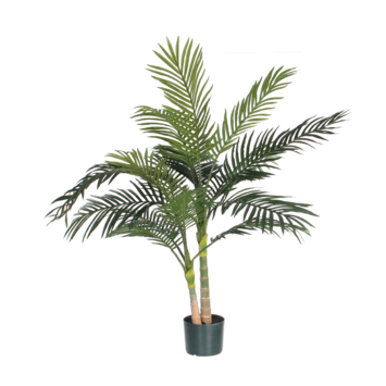 De Kunstplant Areca palm in pot van 120 x 100 cm geeft je interieur meteen een frisse en tropische sfeer. De volle bladeren zorgen voor een speelse uitstraling en door de royale afmetingen valt de plant mooi op in elke ruimte. Dankzij de meegeleverde pot kun je de kunstpalm direct neerzetten waar jij extra groen wilt toevoegen. Een prachtige keuze voor wie houdt van een levendige look zonder onderhoud.