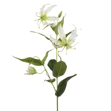 Kunstplant Gloriosa heeft meerdere takken met bloemetjes en is 75 cm lang. Kunstplanten en -bloemen zijn de ideale manier om een kamer van groen te voorzien, zonder groene vingers te hoeven hebben. Naast deze Gloriosa zijn er nog andere varianten kunstplanten en kunstbloemen, leuk om te combineren. De kunstplanten en kunstbloemen lijken net echt.