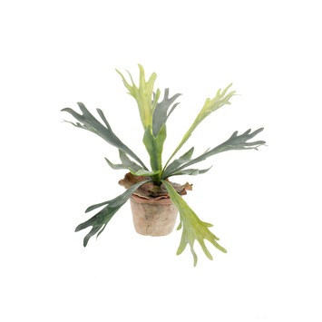 Kunstplant Hertshoorn 50 cm, zit in een ronde antieke terracotta pot van 11 cm. Kunstplanten en -bloemen zijn de ideale manier om een kamer van groen te voorzien, zonder groene vingers te hoeven hebben. Naast deze Herfsthoorn zijn er nog andere varianten kunstplanten en kunstbloemen, leuk om te combineren. De kunstplanten en kunstbloemen lijken net echt.