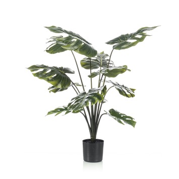 Kunstplant Monstera heeft meerdere takken en is 80 cm hoog, zit in een ronde pot. Kunstplanten en -bloemen zijn de ideale manier om een kamer van groen te voorzien, zonder groene vingers te hoeven hebben. Naast deze Monstera zijn er nog andere varianten kunstplanten en kunstbloemen, leuk om te combineren. De kunstplanten en kunstbloemen lijken net echt.