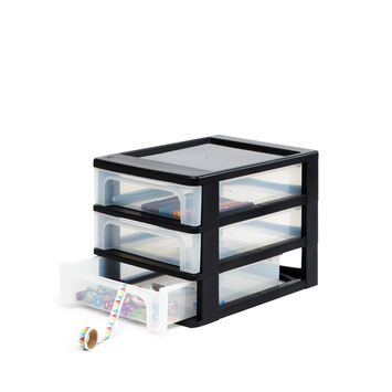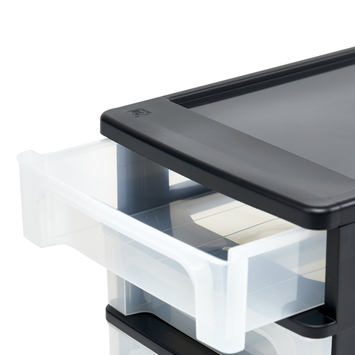 Dit handige ladesysteem van Iris Ohyama bevat 3 lades welke geschikt zijn voor A4 formaat documenten, de lades hebben een inhoud van 4 liter. Alle lades zijn voorzien van brede handgrepen en transparant materiaal waardoor je de inhoud snel kan identificeren, ook zijn ze voorzien van een stopper waardoor ze niet uit de kast kunnen vallen. De Organiser Chest van Iris Ohyama is licht in gewicht, makkelijk te reinigen en duurzaam, ideaal voor thuis of op het kantoor. Dit model kan vanwege het formaat makkelijk op het bureau geplaatst worden.