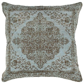Het kussen Abadan petrol 100x100 cm is een kussen dat past bij het vloerkleed Abadan petrol (artikelnummer 534587). De patronen op het kussen zijn afgestemd op de patronen op het vloerkleed waardoor beide een geheel vormen. Het kussen van 100x100 cm is van 100% synthetische vulling, de buitenzijde is van katoen.