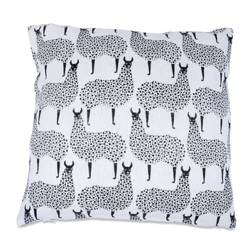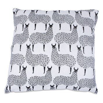 Het kussen Alpaca in de kleur Zwart is gemaakt van een grove linnenlook katoen met daarop een grafische print van een alpaca. Het kussen geeft een hippe twist aan je interieur. De afmetingen van dit kussen zijn 45 centimeter breed en 45 centimeter lang.