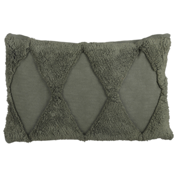 Sierkussen met een heerlijk zachte stof en speelse ruiten. Het katoenen kussen heeft een groene kleur en een langwerpige vorm van 55x35 cm.