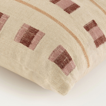 Voeg een subtiele grafische toets toe aan je interieur met dit kussen met blokpatroon. Het kussen heeft een eigentijds patroon van blokjes in warme tinten zoals beige, roze en bruin, waardoor het perfect past in een moderne of bohemien stijl. Gemaakt van katoen, biedt het zowel comfort als stijl. Met de afmetingen L35 x B25 x H10 cm is het kussen ideaal voor op de bank, stoel of als accentkussen op je bed. Dit kussen is een eenvoudige maar krachtige manier om je ruimte te verfraaien.
