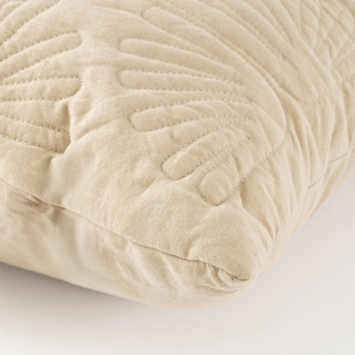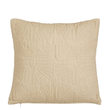 Het kussen is gemaakt van katoen en heeft een subtiel doorgestikt patroon met bloemvormen, waardoor het een zachte, luxe uitstraling krijgt zonder te druk te zijn. De neutrale kleur maakt het een ideale basis om te combineren met andere kussens in verschillende kleuren en structuren, perfect voor op de bank, een fauteuil of het bed. Met een formaat van L45 x B45 x H10 cm biedt het kussen niet alleen extra sfeer, maar ook prettig zit- en rugcomfort. Een tijdloze toevoeging aan ieder interieur.