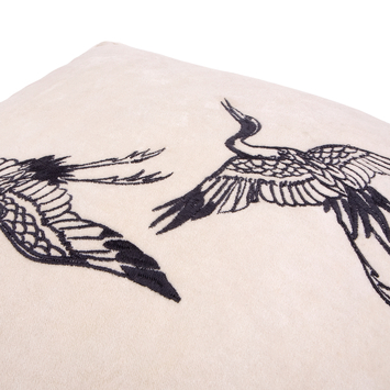 Kussen Borduur Kraanvogel 45x45 cm wit zand