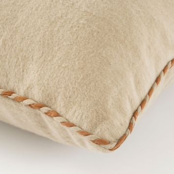 Geef je bank, fauteuil of bed een rustige en stijlvolle uitstraling met dit beige kussen met gevlochten rand. Het kussen is gemaakt van katoen en heeft een effen design, afgewerkt met een decoratieve gevlochten bies in een subtiele contrasterende kleur. Dankzij de neutrale tint is het kussen makkelijk te combineren met andere kleuren en prints, waardoor het past in vrijwel iedere woonstijl. Met een formaat van L55 x B35 x H10 cm is het een fijne toevoeging voor extra sfeer en comfort in je interieur.