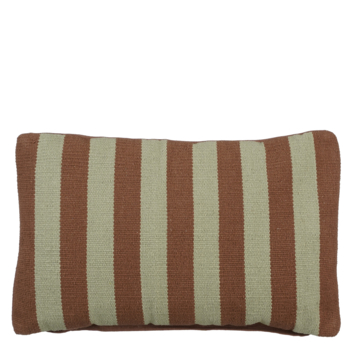 Kussen bruin streep l.groen - l55xb35xh10cm