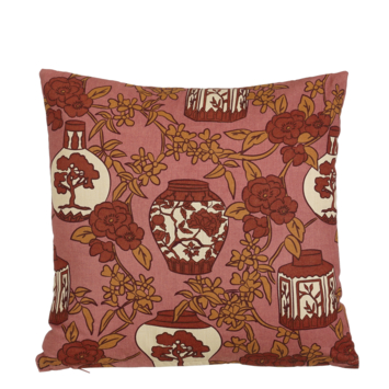 Breng een exotische sfeer in je interieur met dit kussen met Chinese vaasprint. Het kussen heeft een prachtig patroon van traditionele Chinese vazen, gecombineerd met bloemen in warme tinten van bruin, roze, beige en rood. Het is gemaakt van katoen, wat zorgt voor zowel comfort als stijl. Met de afmetingen L45 x B45 x H10 cm is dit kussen perfect voor op de bank, stoel of bed. De kleurrijke en gedetailleerde print maakt dit kussen een opvallend accent in je woonruimte.
