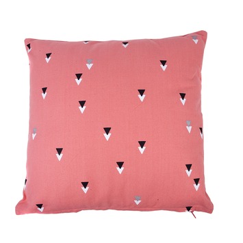 Het kussen driehoek bruinoranje/zilver 45x45 cm heeft een fijne grafische driehoekprint. De driehoekjes geven een speelse uitstraling, wat op zal vallen wanneer je het kussen op de bank legt of in de tuin gebruikt. Het kussen driehoek is 45 bij 45 centimeter en is in meerdere kleuren verkrijgbaar.