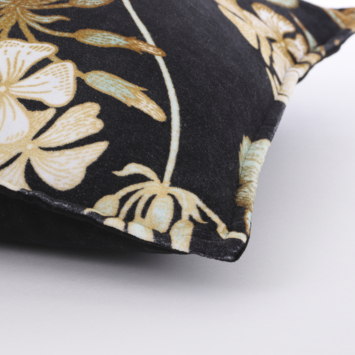 Een fleurig sierkussen als de Fiene van In The Mood Collection zet gelijk de toon in het interieur. De basis is donker, maar de print met verschillende bloemen en bladeren maakt dit meer dan goed. Daarnaast voelt het kussentje heerlijk zacht aan! Het kussen is gemaakt van katoen en heeft een afmeting van L45 x B45 cm.