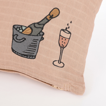 Fleur jouw stoel of bank op met dit sierkussen met detail van een fles. Het kussentje is gemaakt van katoen en heeft een zachte kleuren. Ga eens voor iets anders en kies voor dit unieke kussen. Het kussen heeft een afmeting van L55 x B35 cm.