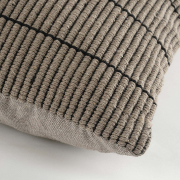 Met zijn natuurlijke taupekleur en grof geweven structuur brengt dit sierkussen een kalme, warme sfeer in huis. De verticale strepen zorgen voor diepte en een subtiel speels accent, zonder dat het druk oogt. De mix van katoen en polyester voelt rijk en stevig aan, ideaal als comfortabel rugkussen op de bank of als stijlvol detail op bed. Dankzij het langwerpige formaat van 55 bij 35 centimeter voeg je moeiteloos variatie toe aan je kussencollectie. Een eenvoudige manier om je zithoek of slaapkamer net dat beetje extra te geven.