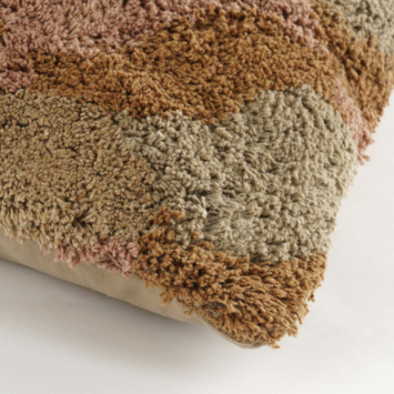 Dit sierkussen brengt een vleugje speelsheid in huis met zijn grafische patroon in lichtbruin, roze en beige. De zachte kleuren en golvende lijnen zorgen voor een warm en levendig effect, zonder te overheersen. Gemaakt van katoen en comfortabel gevuld, voelt het kussen zacht aan en voegt het structuur toe aan je zithoek. Mooi in combinatie met andere rustige tinten of als subtiel, vrolijk accent op zichzelf. Met een formaat van 45 bij 45 centimeter is het een sfeervolle toevoeging voor bank of stoel.