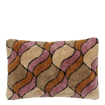 Dit sierkussen brengt met zijn golvende patroon in roze, beige, bruin en oranje een vleugje retro in huis, zonder dat het te druk wordt. De zachte structuur voelt prettig aan en voegt direct warmte en textuur toe aan je interieur. Gemaakt van een mix van polyester en katoen en comfortabel gevuld, ligt het lekker in de rug en ziet het er stijlvol uit. Door het langwerpige formaat van 55 bij 35 centimeter is het een ideale aanvulling op de bank, in je favoriete stoel of als opvallend accent op bed.