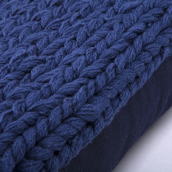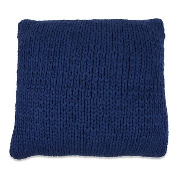 Kussen handgebreid donkerblauw is een orgineel kussen ideaal voor op de bank. Dit hangebreide kussen is goed te combineren met de andere kleuren van deze serie. De gebreide structuur maakt het kussen extra zacht. De afmetingen van kussen handgebreid zijn 45 centimeter hoog bij 45 centimeter breedt.