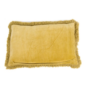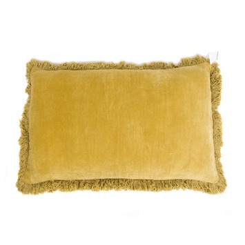 Het kussen Hannah in de kleur Honinggeel is gemaakt van een lekkere zachte fluweel stof. De rand van het kussen heeft een stoere rafel. Met dit kussen op de bank is het fijn thuiskomen. Het kussen is verkrijgbaar in verschillende voorjaarskleuren. De afmetingen van dit kussen zijn 35 centimeter breed en 55 centimeter lang.