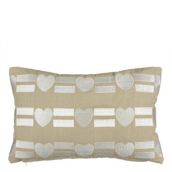 Je interieur opleuken zonder grote veranderingen? Dit sierkussen doet het voor je! De zilverkleurige hartjes- met streepjesprint op beige basis voegt een speels accent toe, waardoor je bank of stoel meteen opvalt. Hij is gemaakt van katoen en heeft een lengte van 55 cm, een breedte van 35 cm en een hoogte van 10 cm. Heb je al een plekje bedacht?