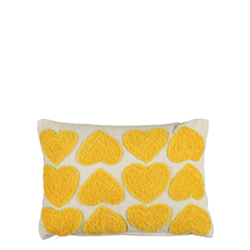 Wist je dat je met sierkussens eenvoudig een frisse uitstraling aan je interieur kunt geven? Dit sierkussen is ideaal voor zowel de bank als een stoel en voegt met zijn gele hartjesprint direct een vrolijke sfeer toe. Gemaakt van katoen, lekker zacht, en de afmetingen zijn L35 x B25 x H10 cm.