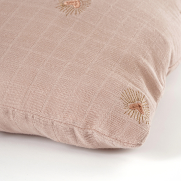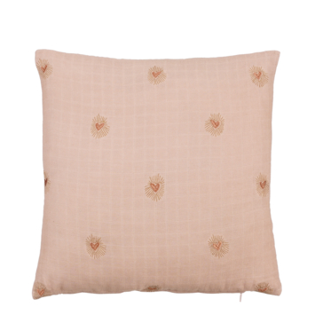 Als je op zoek bent naar een schattig- en gezellig element om toe te voegen aan de bank of het bed, dan is dit siersierkussen een goede keuze. Het heeft een leuk hartjespatroon en brengt een gevoel van liefde en romantiek in de woonruimte. Doordat het sierkussen is gemaakt van katoen voelt het heerlijk zacht aan en het biedt het ultieme comfort en de -ondersteuning tijdens het zitten of liggen. Het lichtroze kussen is inclusief vulling en heeft een afmeting van 45 x 45 cm.