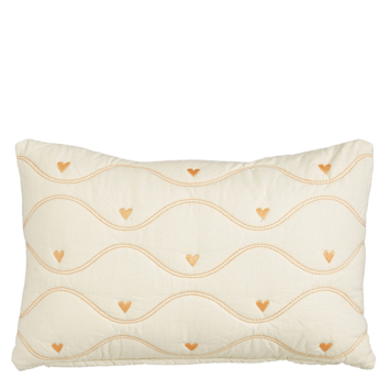Geef je bank, fauteuil of bed een zacht en speels accent met dit kussen met hartjesdessin in oranje. Het kussen is gemaakt van katoen en heeft een lichte ondergrond met golvende lijnen en kleine hartjes in een warme oranje tint, waardoor het een subtiele, decoratieve uitstraling krijgt. Dankzij het formaat van L55 x B35 x H10 cm is het ideaal als sierkussen en makkelijk te combineren met andere kussens in neutrale kleuren of met bijpassende prints. Perfect om extra sfeer toe te voegen aan je interieur.