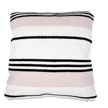 Hartford is een kelim kussen in de kleur Blush Roze, Zwart en Ecru en is met de hand geweven in een prachtig streeppatroon. Dit duurzame kussen maakt je interieur persoonlijk en uniek. Het kussen is verkrijgbaar in verschillende kleuren van dit seizoen. De afmetingen van dit kussen zijn 45 centimeter breed en 45 centimeter lang.