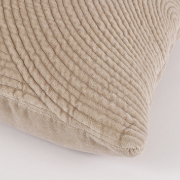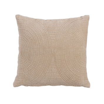 Katoenen sierkussen Jinte heeft een velvet afwerking in een beige kleur en een rits om het kussen te kunnen wassen. De afmeting van het kussen is 45x45 cm.