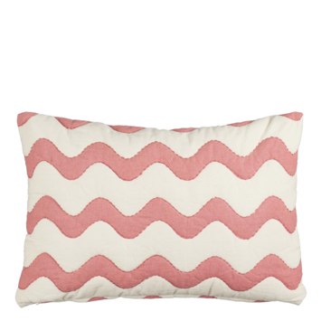 Toe aan een vrolijke touch in je interieur? Dan is dit sierkussen de perfecte toevoeging! Het kussen is gemaakt van zacht katoen en komt in het off-white met een golvend patroon in het lichtroze. Hij heeft een lengte van 55 cm, een breedte van 35 cm en een hoogte van 10 cm. De perfecte afmetingen voor een comfortabele setting!